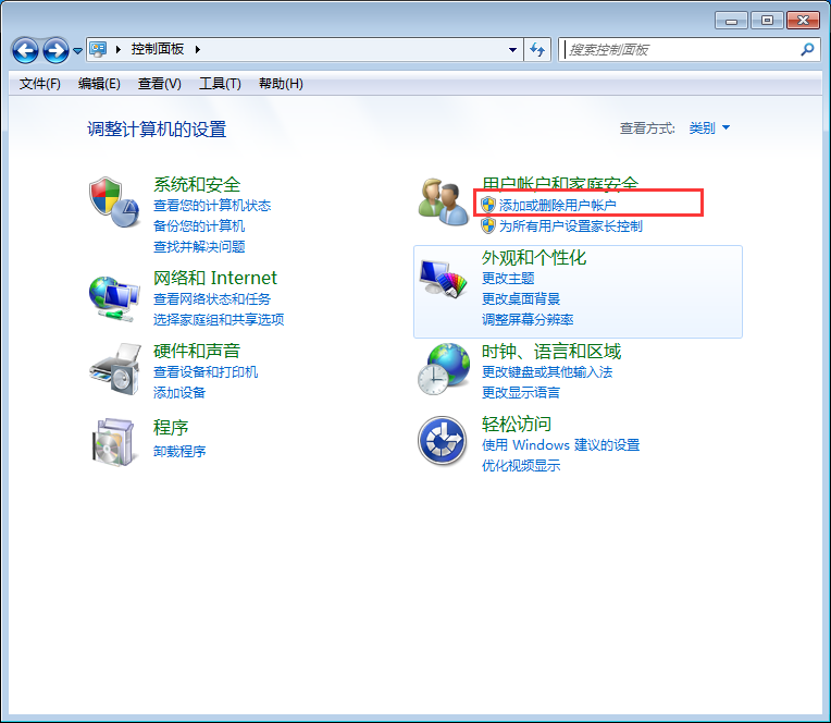 2、选择“添加或删除用户账户”
