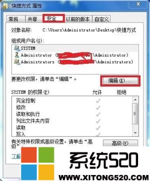 1、选中带小锁的文件,右击并选择属性。打开以下对话框。选择“安全”选项卡,并点击“编辑”按钮。
