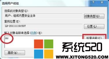 3、在新打开的对话框里输入au,并点击”检查名称“后一路确定下去。