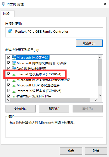 第四步:点击“lnternet协议版本 4(TCP/IPv4)”