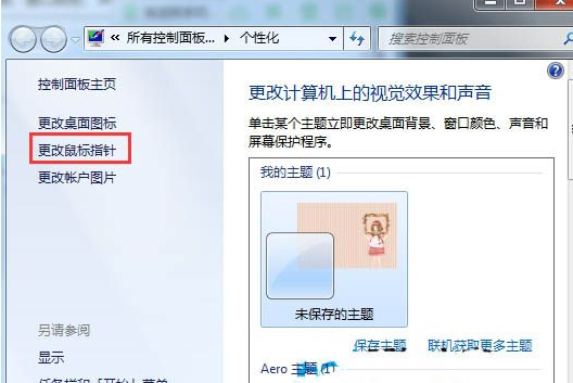 2、在个性化页面中,选择【更改鼠标指针】