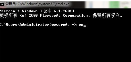 3、之后重启在进入管理员界面输入powercfg -h on将睡眠重启即可。