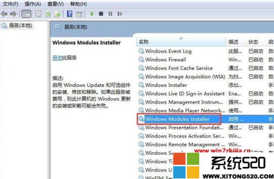 2、在服务(本地)窗口找到:Windows Modules Installer服务,查看是否被禁用;