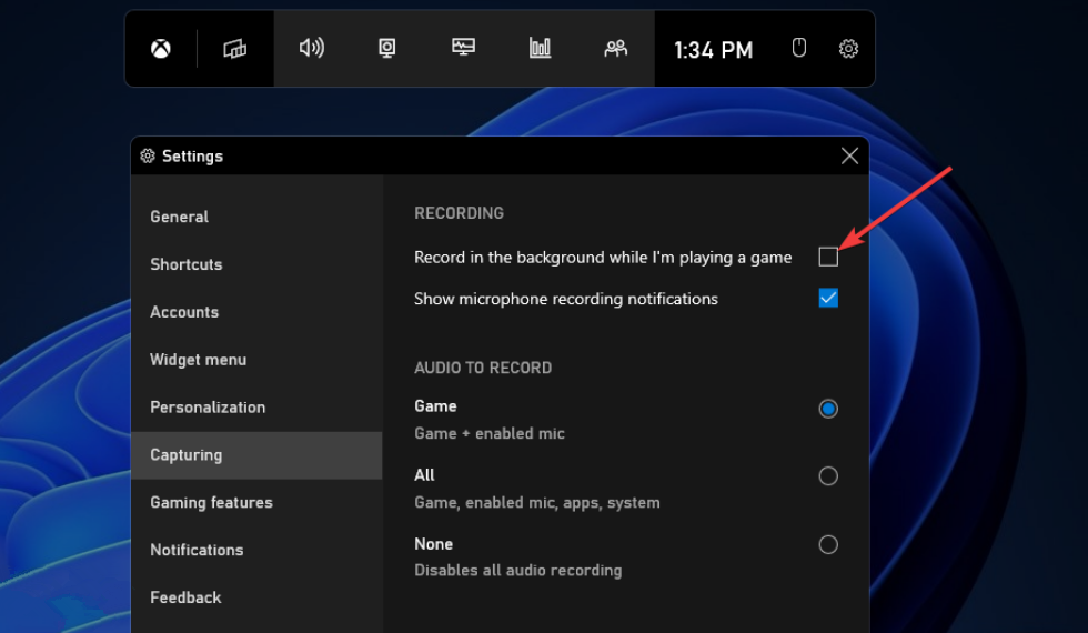 然后取消选中我正在玩游戏时在后台录制复选框。