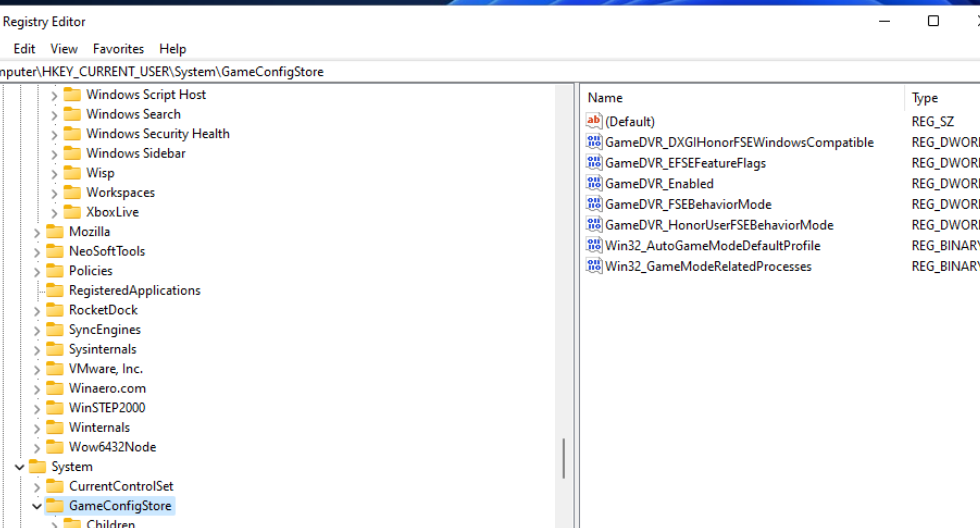 打开这个关键路径:HKEY_CURRENT_USERSystemGameConfigStore