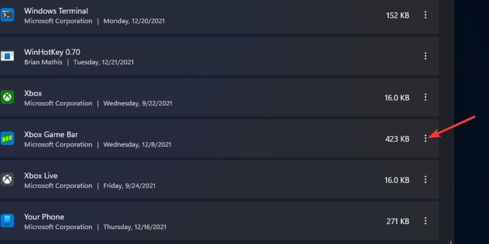 单击 Xbox Game Bar 应用程序的三点按钮。