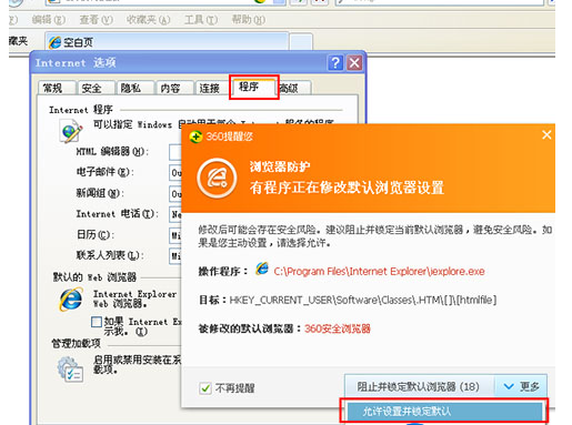 第四步:在弹出的提示框选择 “不再提醒”---“允许设置并锁定默认”