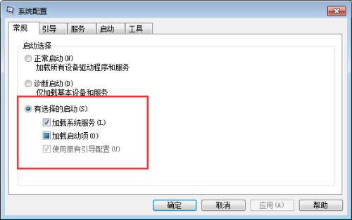 1、在“常规”选项卡上,单击“有选择的启动”。