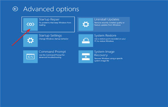 4、然后点击 Advanced Options然后点击Startup Repair。