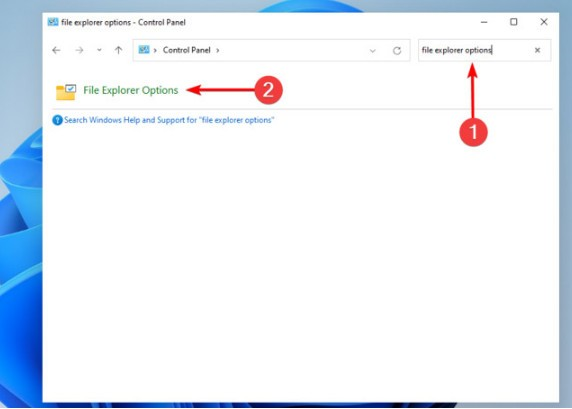 在右上角的搜索栏中,键入文件资源管理器选项并打开它。