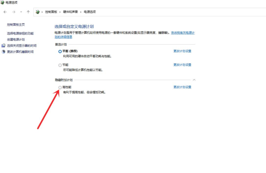 5、最后将当前选择的电源计划切换成【高性能】即可