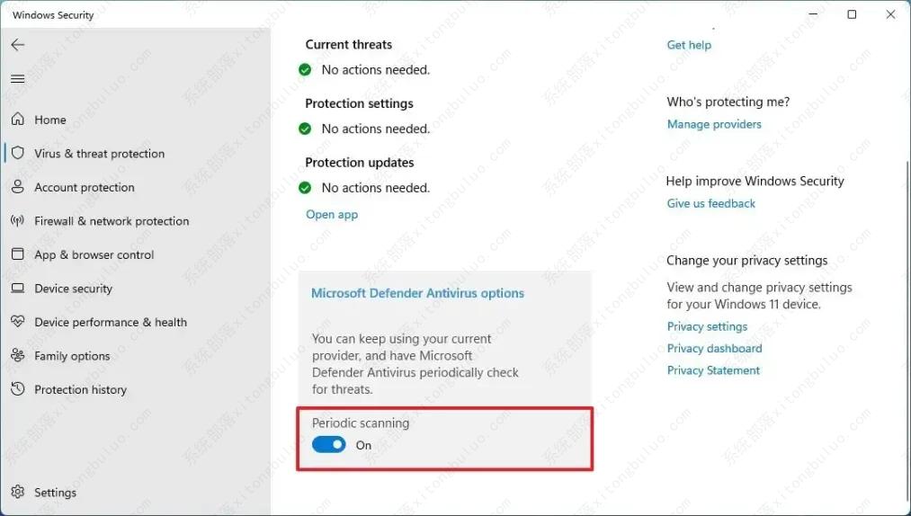 Microsoft Defender 防病毒定期扫描只会增加一层额外的安全保护,使 Windows 11 更加安全。当设备上已安装另一种防病毒解决方案时,它不提供实时保护。