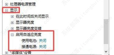 5、在显示选项下。将“启用自适应亮度”选项“关闭”就可以了。