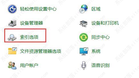 3、然后在其中找到并打开“索引选项”。