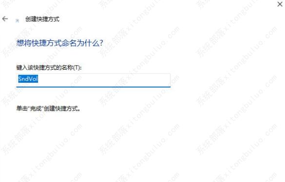 3、键入该快捷方式的名称(系统默认会填入SndVol),再单击完成创建快捷方式。