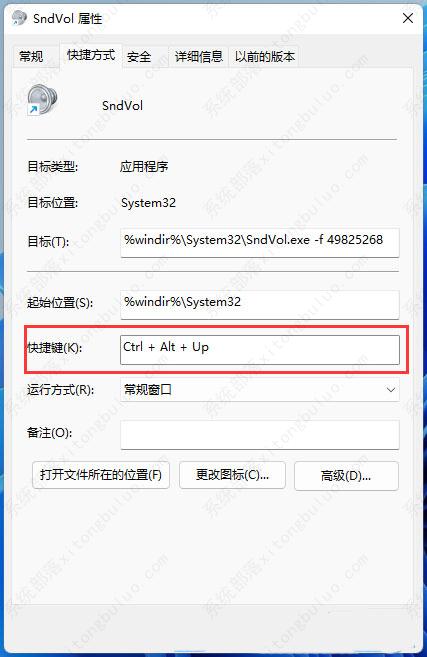 5、SndVol 属性窗口,在快捷键位置,按下想要使用的声音调节快捷键,并保存。