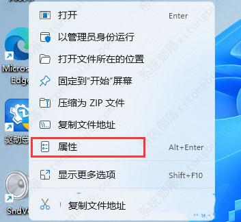 4、找到刚创建,名称为SndVol的快捷方式,然后点击右键,在打开的菜单项中,选择属性。