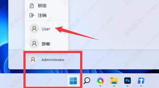 4、最后点击任务栏中的开始,点击头像切换到我们刚刚创建的用户即可。