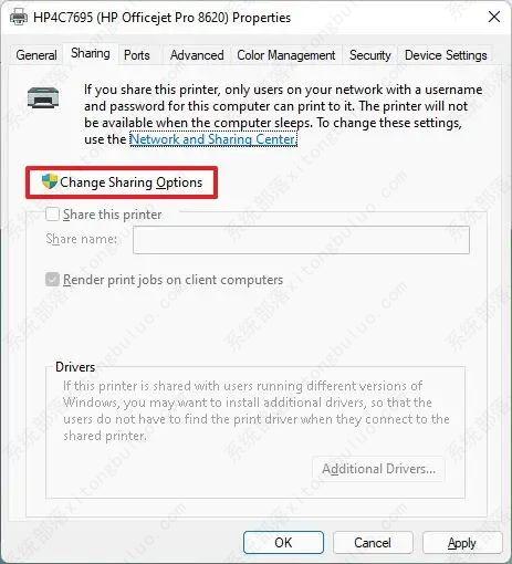 10、单击更改共享选项按钮(如果适用)。