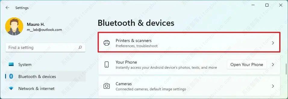 要从“设置”在 Windows 11 上的网络中共享打印机,请使用以下步骤: