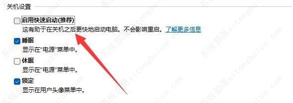 6、关闭“启用快速启动”,并“保存修改”即可解决按键盘就开机问题。