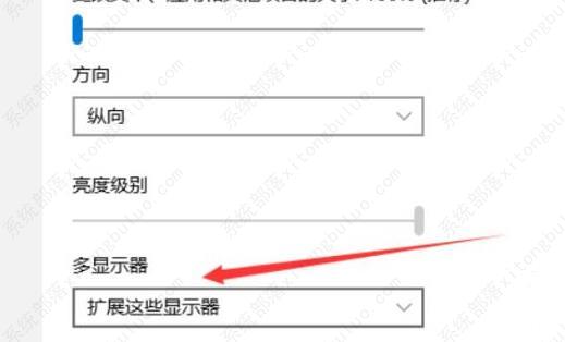 4、接着在右边的多显示器中选择“扩展这些显示器”即可(如图所示)。