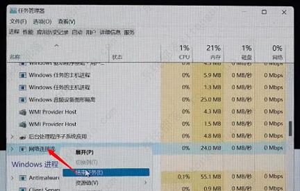 3、选择网络连接后,点击结束任务。