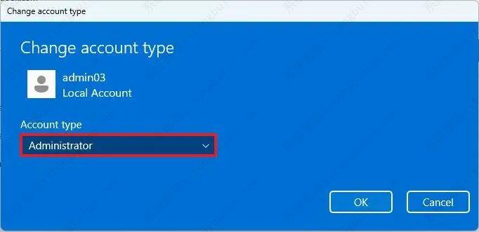 11、在“帐户类型”设置中选择管理员选项。