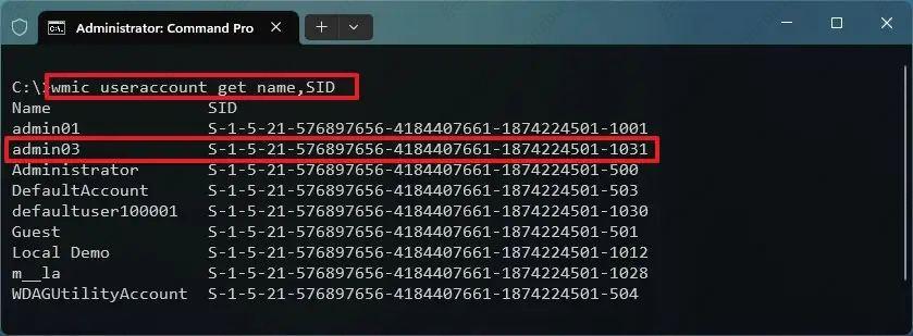wmic 用户帐户获取名称,SID