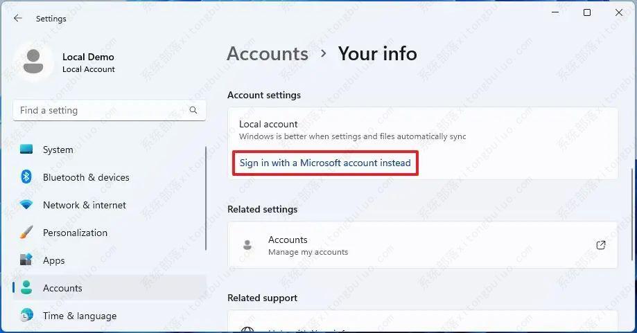 要将本地帐户转换为 Windows 11 上的 Microsoft 帐户,请使用以下步骤: