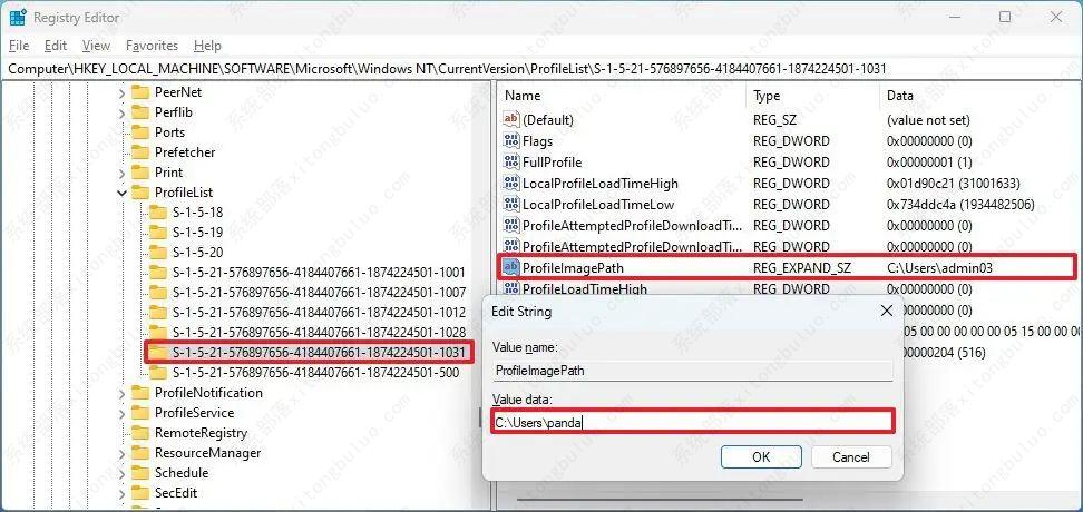 方法二:在 Windows 11 上使用注册表更改配置文件名称