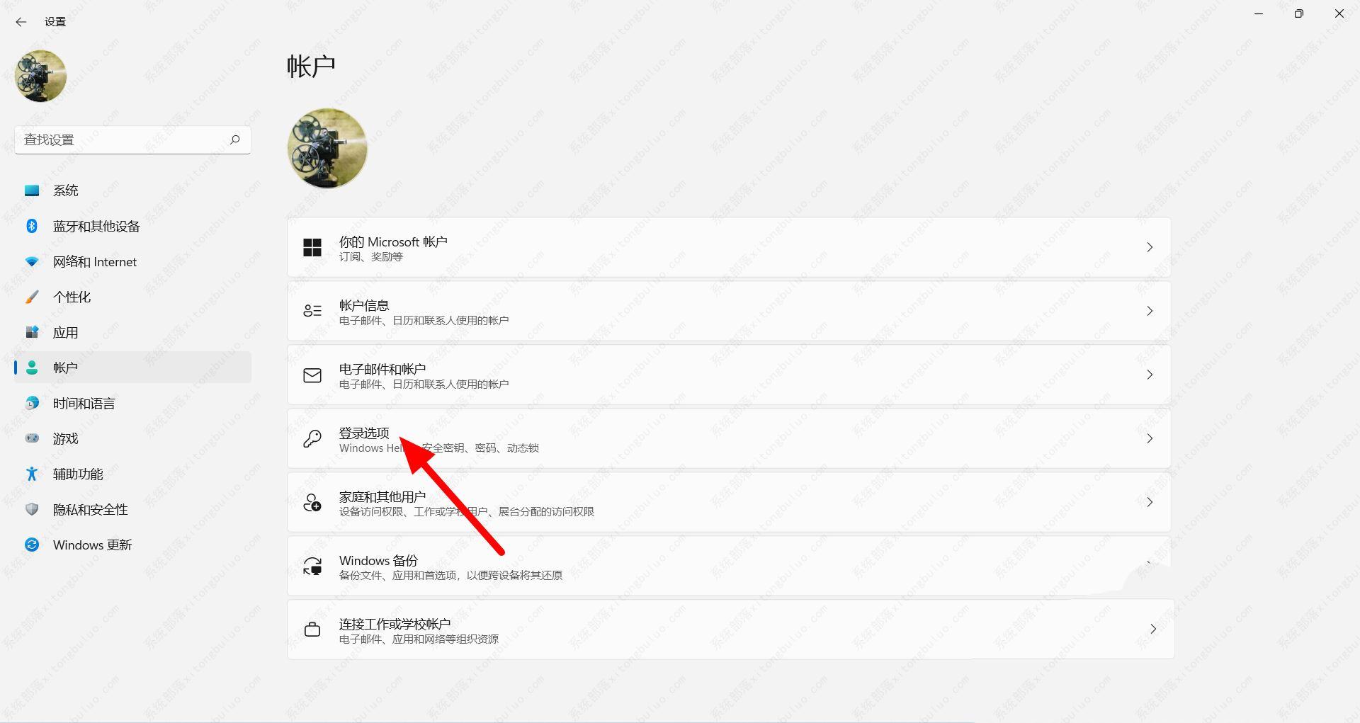 1、点击打开桌面开始菜单中的设置面板,在账户栏目中点击登录选项按钮。