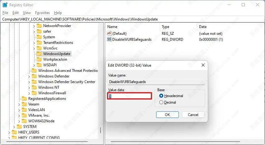 7、将键命名为DisableWUfBSafeguards,然后按 Enter。