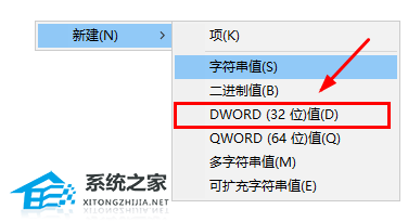 4. 在右边空白处单击鼠标右键,选择新建的DWORD。