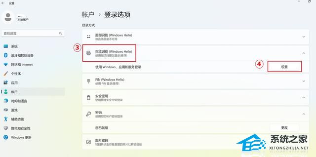 2. 点选[指纹识别 (Windows Hello)],然后点击[设置]。