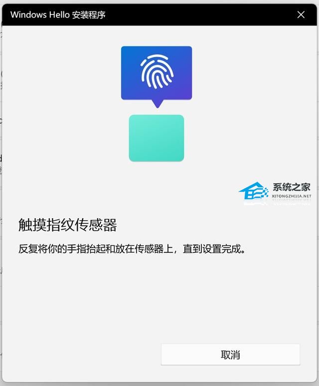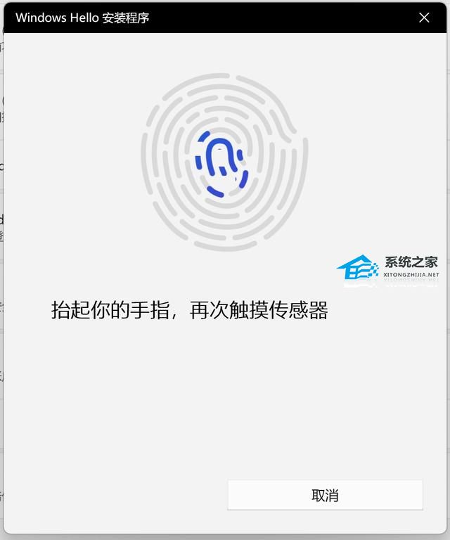 6. 请依照屏幕上的提示,反复提起您的手指并再次触碰指纹辨识器。