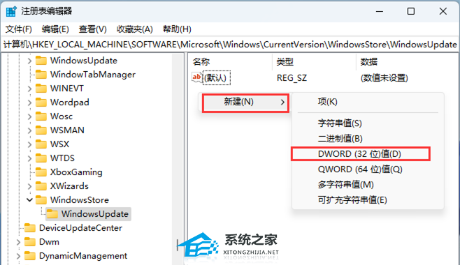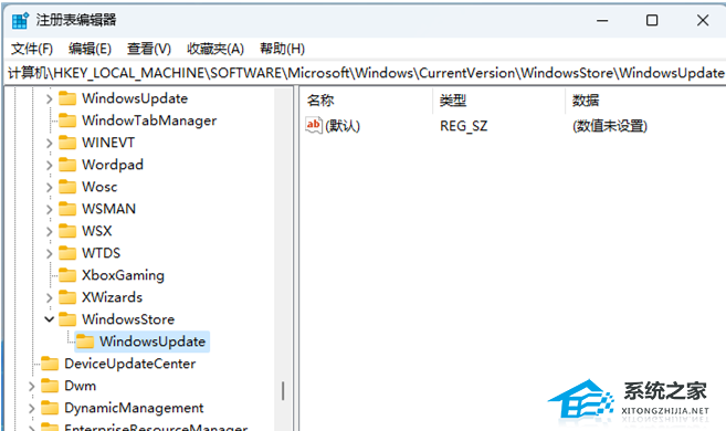 4. 注册表编辑器窗口,依次展开到【HKEY_LOCAL_MACHINESOFTWAREMicrosoftWindowsCurrentVersionWindowsStoreWindowsUpdate】;