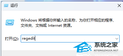 2. 运行窗口,输入【regedit】命令,按【确定或回车】打开注册表编辑器;