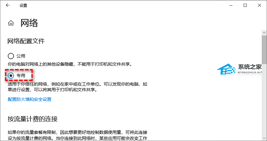 步骤2. 在网络配置文件下方将其更改为“专用”。