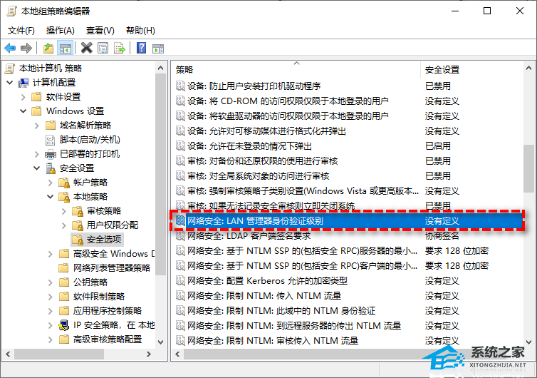 步骤3. 双击并打开“安全选项”详情,然后找到“网络安全:LAN管理器身份验证级别”并双击将其打开。