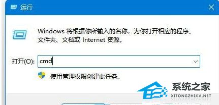 1. 运行(Win+R),输入CMD,点击确定打开命令提示符窗口。