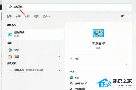 1. 在搜索框中输入控制面板,然后点击控制面板。