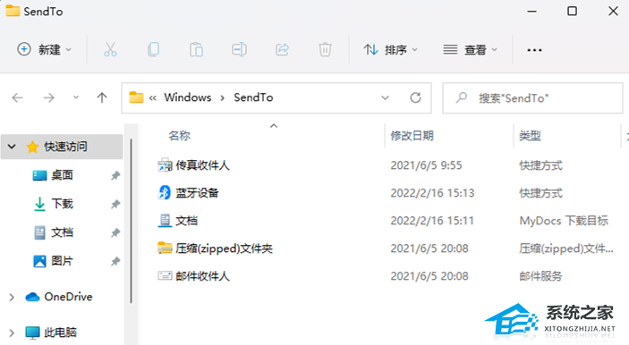 3. SendTo文件夹,可以查看右键发送到菜单项;