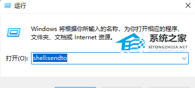 2. 运行窗口,输入【shell:sendto】命令,按【确定或回车】;
