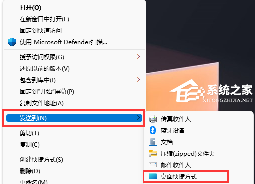 最后,再点击右键菜单,发送到下的桌面快捷方式就可以重新显示了。