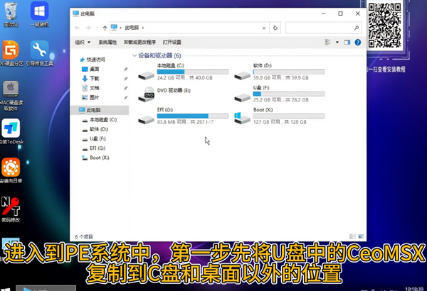 3. 进入PE界面后,将CeoMSX压缩包复制到C盘和桌面以外的位置并解压备用。