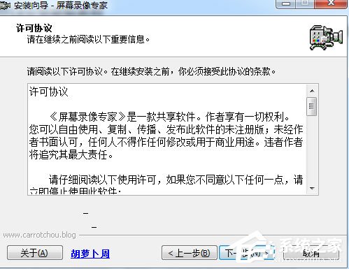 2、进入屏幕录像专家许可协议界面,仔细阅读协议后勾选我接受同意按钮,点击下一步;