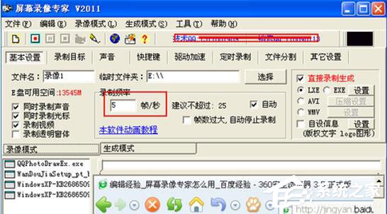 3、然后还可对录制频率进行设置,用户设置的值越大,录制的视频就会越清晰。建议不超过25帧/秒。还可对其它参数进行设置,大家可切换上方不同的选项卡进行选择设置,这里小编就不一一为大家讲解了;