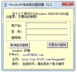 Win2K&XP系统自动登录器 V2.1 绿色版