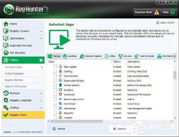 RegHunter是一款相当优秀的电脑优化软件,这款电脑优化软件可以帮助用户检测各种PC问题,能够增强隐私保护,并帮助优化系统,支持扫描Windows注册表以识别和删除无效的注册表数据以及以前卸载的程序的剩余部分。